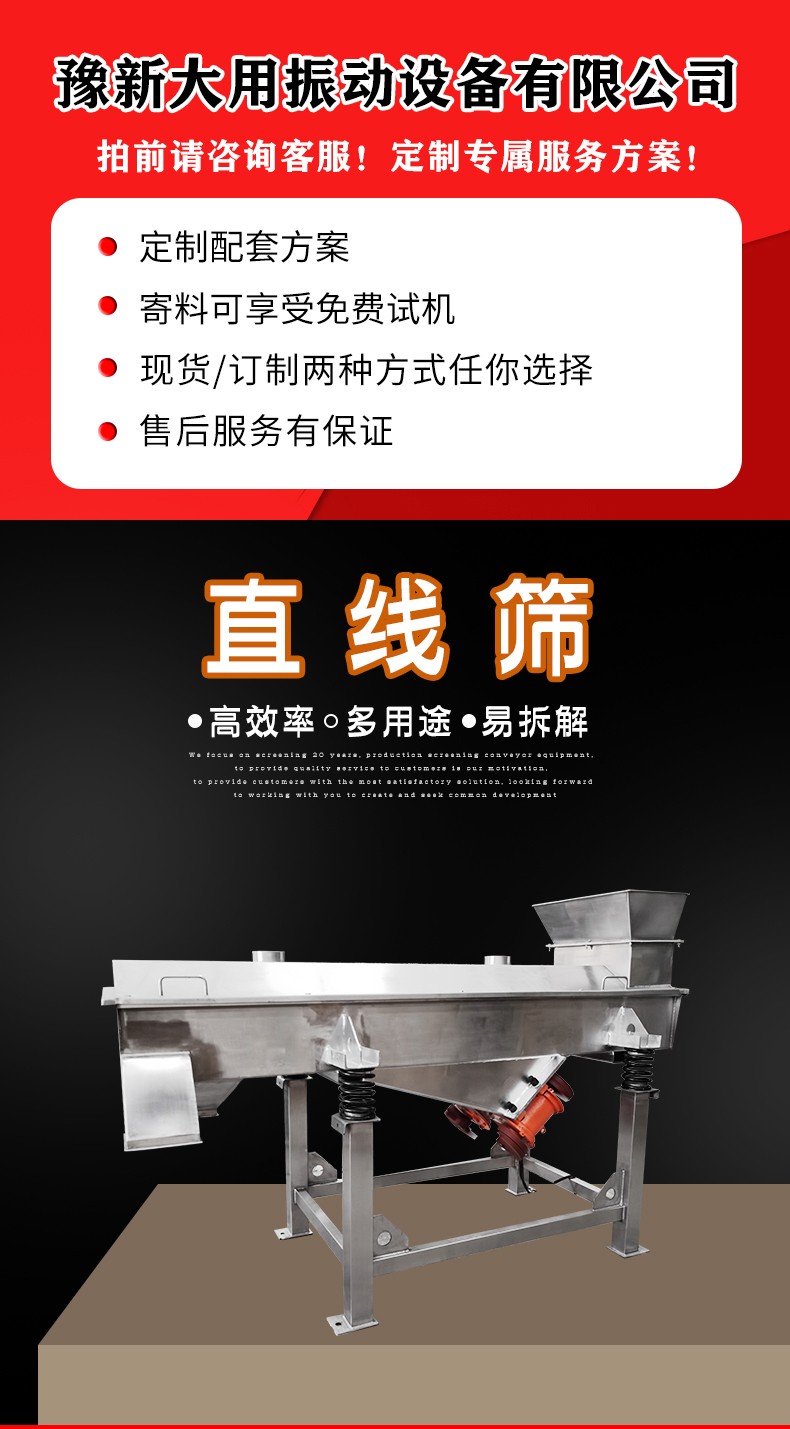 【物料要求】:顆粒度物料,如食品,化工,建筑類物料原料 【產品簡述】:直線振動篩可以將物料按照粒徑大小不同而分級為多種規格,提高物料的利用價值。碳鋼直線振動篩具有篩分產量大,價格便宜等特點,...