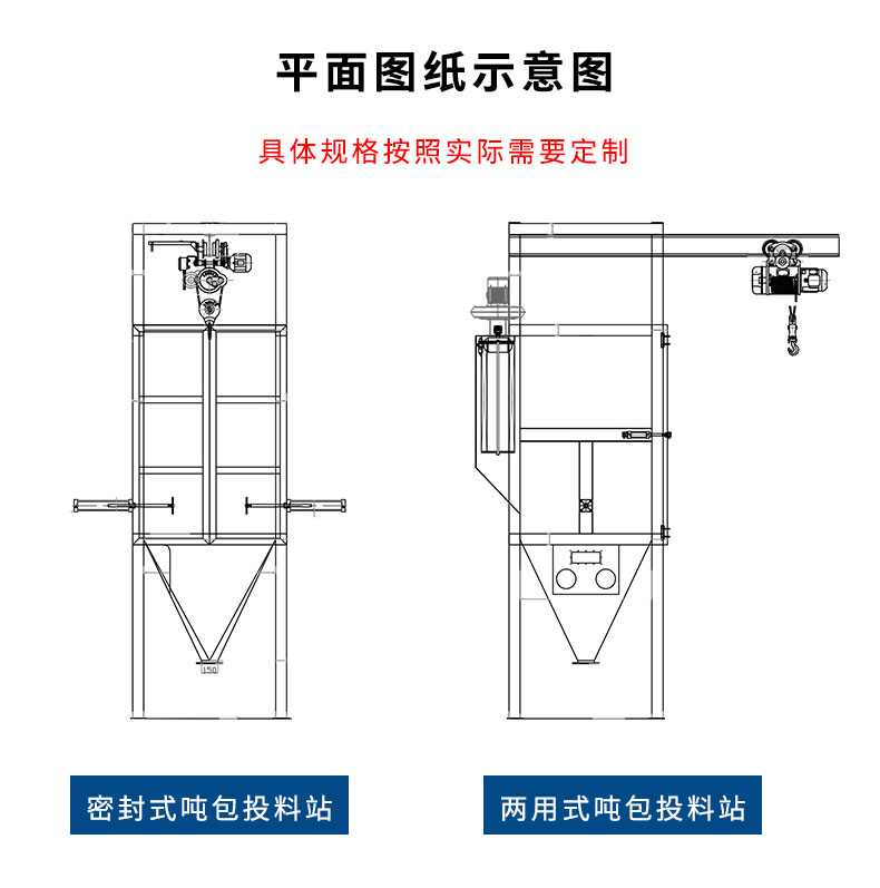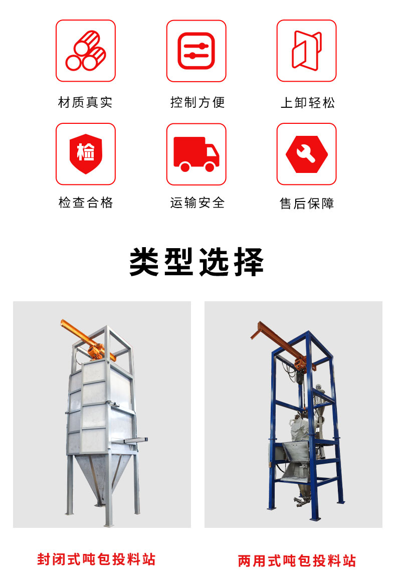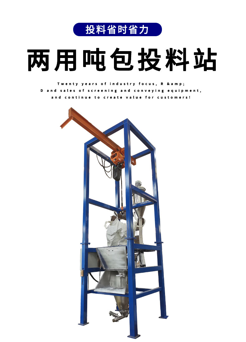 【物料要求】:粉末顆粒物料 【產(chǎn)品簡(jiǎn)述】:噸包投料站解決了噸包物料在投料過程中有粉塵飛揚(yáng)的現(xiàn)象,使用收塵裝置,解決粉塵飛揚(yáng)...